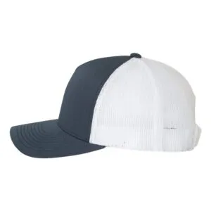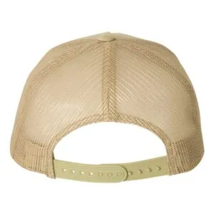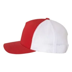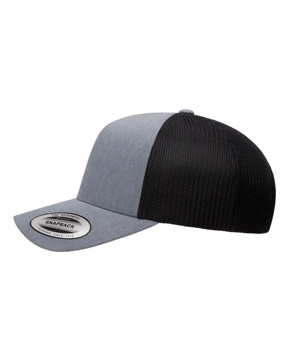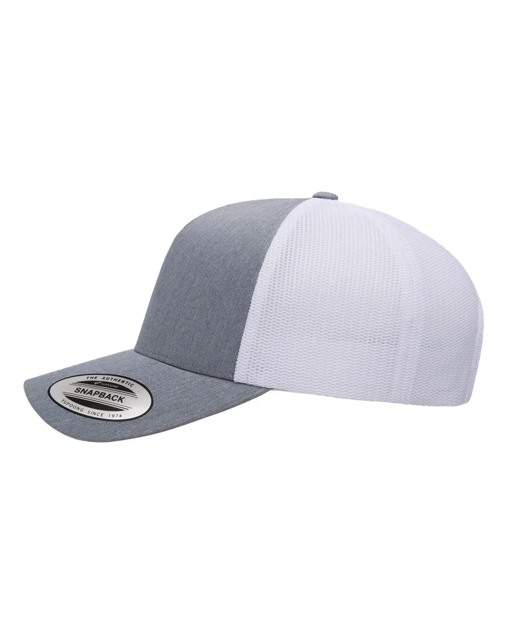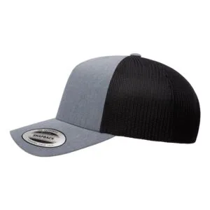 Custom Leather Patch Hats on YP 6506 Classic Trucker hat with mesh back, structured, five-panel, mid-profile, perma curv visor and snapback closure.